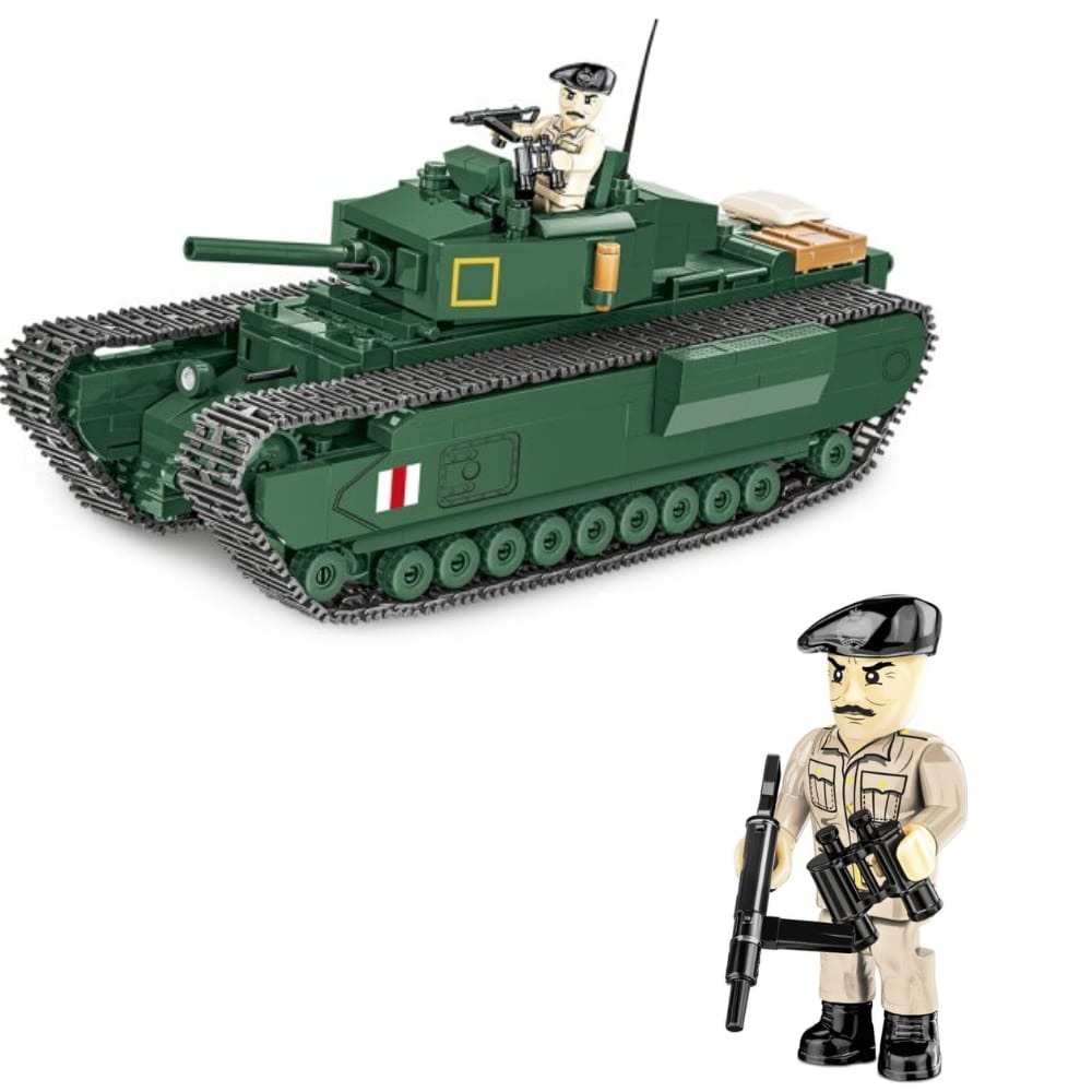 Cobi tankki Churchill MK. III 3046 – on yksityiskohtainen pienoismalli. Huomionarvoista on vihreän tumma sävy, jota on toistaiseksi käytetty harvoin COBI-malleissa. Setti on helppo rakentaa, täydellinen seikkailun alkuun puolalaisilla rakennuspalikoilla. Kaikki graafiset yksityiskohdat ovat korkealaatuisia tulosteita, jotka eivät kulu pois edes intensiivisessä käytössä. Churchill-tankin malli on täydellinen leluksi, mutta myös ainutlaatuinen elementti sotilas- ja panssaroitujen aseiden fanien kokoelmassa.