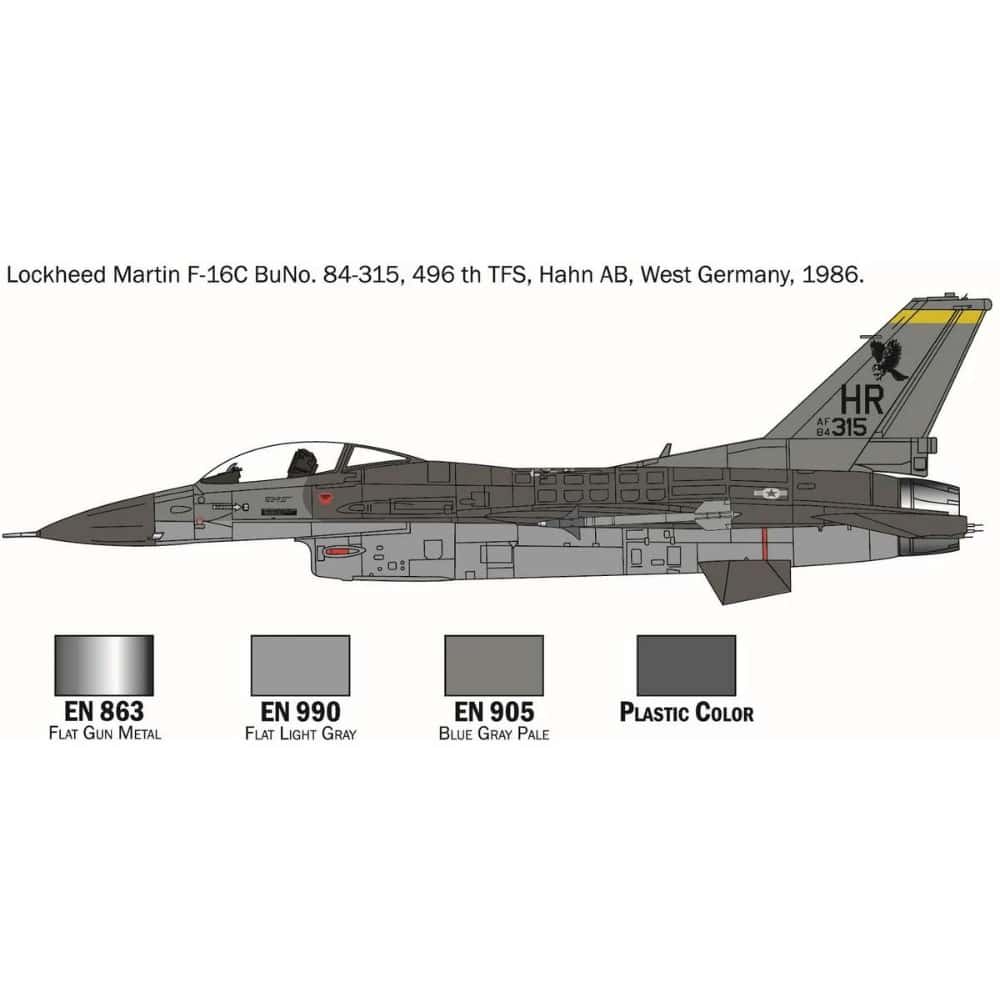 The F-16 Fighting Falcon, produced by the American company General Dynamics since the late ’70s, is a real icon of the military aviation history. It was originally developed, according the United States Air Force need, to provide a modern and effective single-seat air superiority day fighter. However the project has progressively evolved and created an all-weather multirole aircraft able to have an extraordinary operational flexibility The F-16 is characterized by an original design easily recognizable by the frameless bubble canopy, which guarantees great visibility to the pilot. The F-16 adopted innovative solutions such as the side-mounted control stick, the ”fly-by-wire” control system and modern avionics to enhance flight and combat performances. Appreciated by the pilots for its great manoeuvrability and reliability, the “Fighting Falcon” is armed with a 20mm M61 Vulcan internal cannon. Thanks to its hard points and location, it can mount a huge range of offensive weapons as missiles and bombs. The F-16 has been adopted by a lot of air forces around the World and used, often with great effectiveness, in several operational theatres.