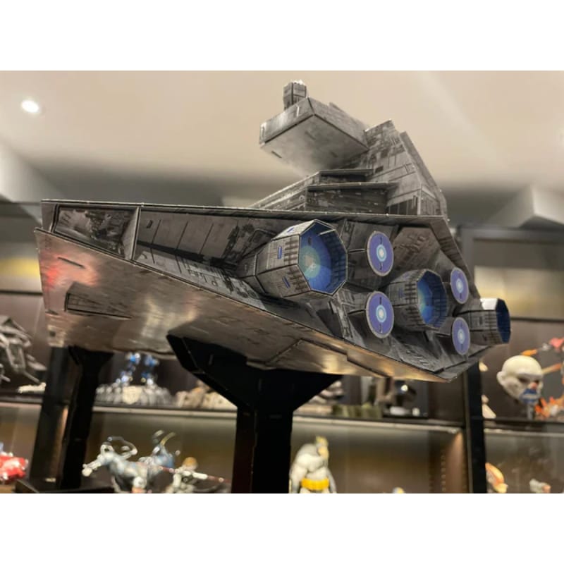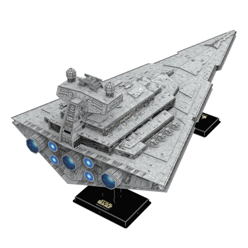 Rakenna oma Star Wars Imperial Star Destroyer-pienoismalli! Star Wars 3D-tuotteet ovat suunniteltu teknisellä tarkkuudella. Voit rakentaa suuria ja yksityiskohtaisia pienoismalleja. Valmista kartonkinen Star Wars Imperial Star Destroyer ja laita se esille! Koottava pienoismalli on ikään kuin kolmiulotteinen palapeli, mutta sen viimeisessä kokoamisvaiheessa käytetään myös liimaa. Mukana tulee helposti luettavat ohjeet, mikä johdattaa kokoamistasi johdonmukaisesti, 6:millin liimapuikko ja telineitä esillepanoa varten. Pienoismallin kokoaminen on hyvää aivojumppaa ja se kehittää loogista-ajattelua. Jokaisen yli 10 vuotiaan Star Wars-fanin lempilahja!
