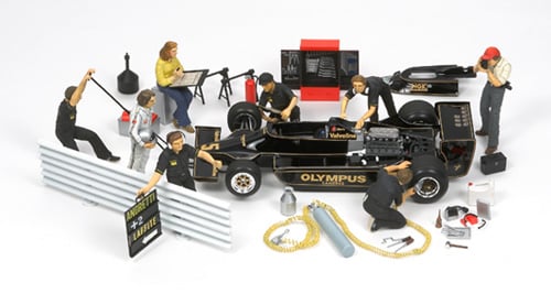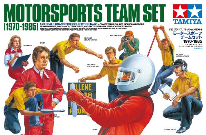 [I am looking forward to creating a scene of the pit scenery that enhances the realism of the F1 model] The world of motor sports competing for 1/100 second. Various drivers support the running of the racing team as well as the driver operating the machine. The role of their dolls is also varied. It is a doll set that can reproduce the pit lane from 1970 to 1985. Combined with car models such as the 1/20 Grand Prix Collection, you can enhance the model and enjoy creating a realistic scene ¡