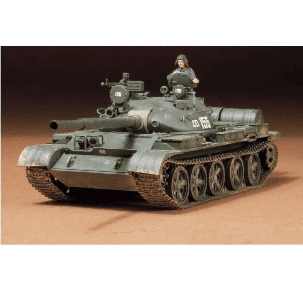 [Appeared in 1965, the main battle tank that represented the eastern countries at that time] It was first announced at the ”20th Anniversary Parade of the Victory over Germany” held in Moscow’s Red Square on May 9, 1965 . The Soviet T62 tank equipped with the world’s first 115 mm smoothbore gun gave a great shock to those involved. A normal tank gun has a rifle (twisted groove) cut inside the barrel, which allows the bullet to circulate and stabilize its posture, but the smoothbore gun barrel does not have a rifle, and a bullet with stabilizing wings is used. will be split. The superiority of a smoothbore cannon and a rifled cannon cannot be decided unconditionally, but the main gun of the T62 uses armor-piercing rounds with wing-stabilized ammunition cannons. It was said that it was possible, and at that time, the main gun of the new tanks in Europe and the United States was the mainstream of the 105mm rifle gun, so it attracted attention. The T62 tank is basically a development of the previous type T54/55 tank, with a longer body length, a change in the turret design due to the installation of a 115mm bone cannon, the adoption of a high-output engine, and a wheel arrangement. Although the difference is conspicuous, the appearance and configuration are very similar. As a type, there is a Jinmoto type T62 and an anti-aircraft machine gun, and there is a T62A, which is said to have strengthened the main gun coaxial machine gun, and was used as a main battle tank in the Soviet Union, Eastern European countries and Middle Eastern countries. [About the Model] This is a 1/35 scale plastic model assembly kit. ★Length: 295mm, Width: 100mm. ★Each hatch, including the commander’s hatch, can be opened and closed. Metal mesh is incorporated in the louver on the top of the engine room to enhance the sense of precision. ★Comes with a Soviet tank crew figure.