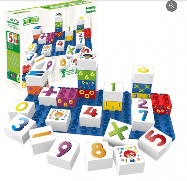 Ekologinen kasvipohjainen sokeriruo’osta valmistettu rakennussarjan avulla voit opettele numerot hauskalla tavalla.