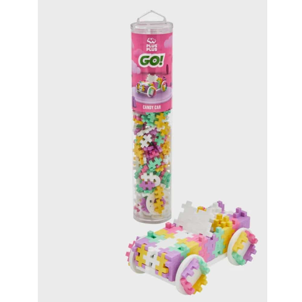 Plus Plus 200 palaa Go! Candy Car – Color Cars Candy on täydellinen sekoitus hauskuutta, luovuutta ja värejä. Putki sisältää 200 kpl pastellisävyisiä Plus-Plussia, joista voidaan rakentaa kokonainen värikkäiden autojen maailma.