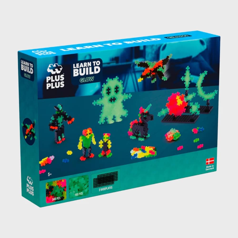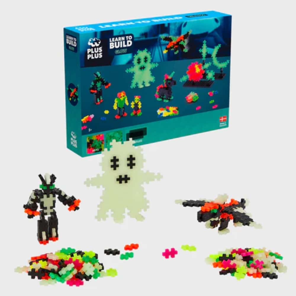 Plus Plus 500 palaa Learn To Build Glow – Tervetuloa maailmaan, joka on täynnä mysteereitä ja hauskaa Learn to Build Glow-in-the-Dark -sovelluksella! Tämä upea laatikko sisältää 500 värikästä Plus-Plus-osaa, mukaan lukien 160 pimeässä hohtavaa ja 340 neonväristä kappaletta sekä 2 rakennuslevyä.