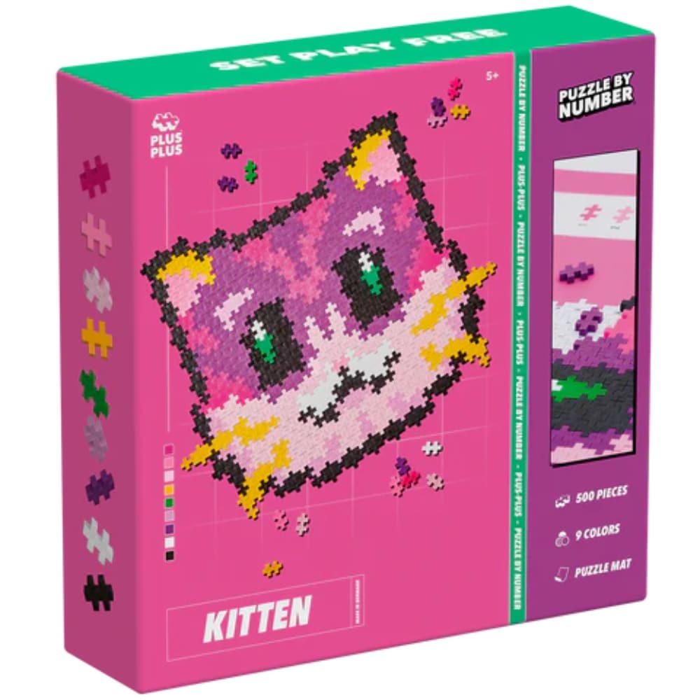 Kun pelaat Puzzle by Number -pelillä, keskittyminen kehittyy ja hiljaiseen tehtävään keskittyminen on nautittavaa. Värikästä Kissanpentua ei ole vaikea luoda, mutta se on hauska ja haastava, sillä siinä on erilaisia mielikuvituksellisia värejä. Sukella siis kissanpennun luomiseen ja löydä Plus-Plusin värikäs maailma ja monet mahdollisuudet.