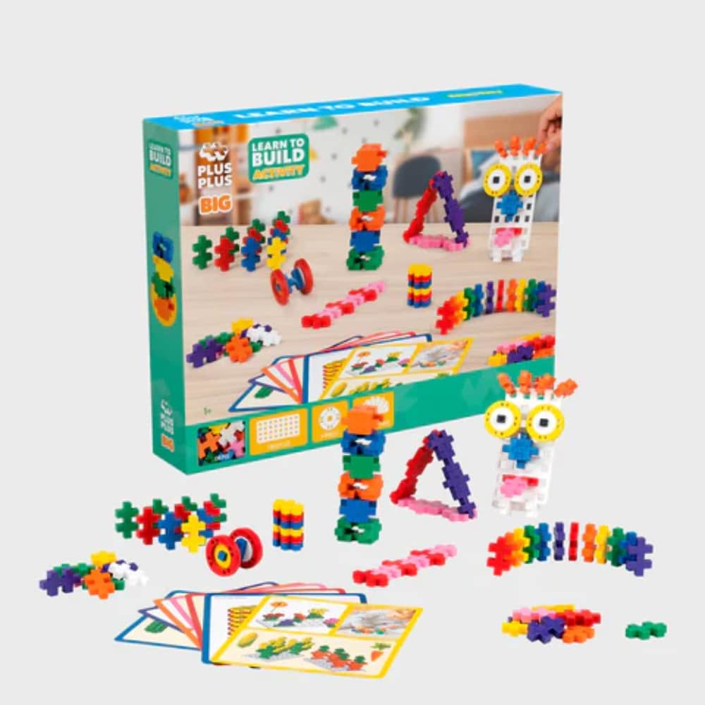 Plus Plus Big 130 palaa Activity – BIG Learn to Build Activity Set on täynnä hauskoja aktiviteetteja koko perheelle. Rakenna pinottava torni, pelaa dominoa tai luo hauskoja kasvoja. Se sopii erinomaisesti 2-4-vuotiaiden lasten haastamiseen opettavaisen leikin avulla.