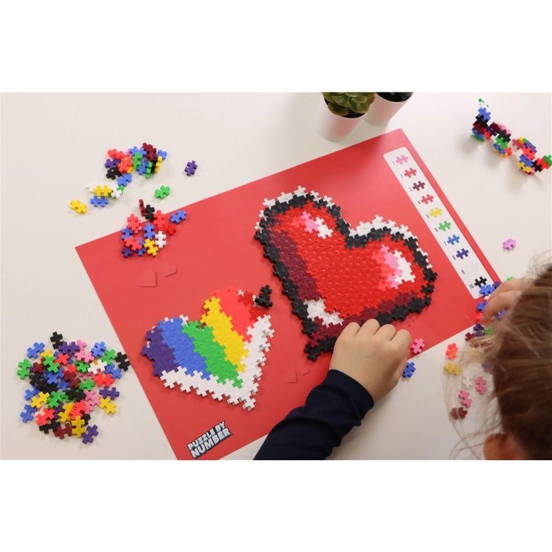 Plus-Plus Puzzle by Number yhdistää hauskasti leikin ja oppimisen. Yhdistä värit ja numerot ja rakenna mosaiikkiluomuksesi. Mukana tulee 250 palaa, joista voit rakentaa kaksi eri väristä ja kokoista sydäntä. Kun Plus Plus luomuksesi on valmiita, voit ripustaa ne huoneesi seinälle.