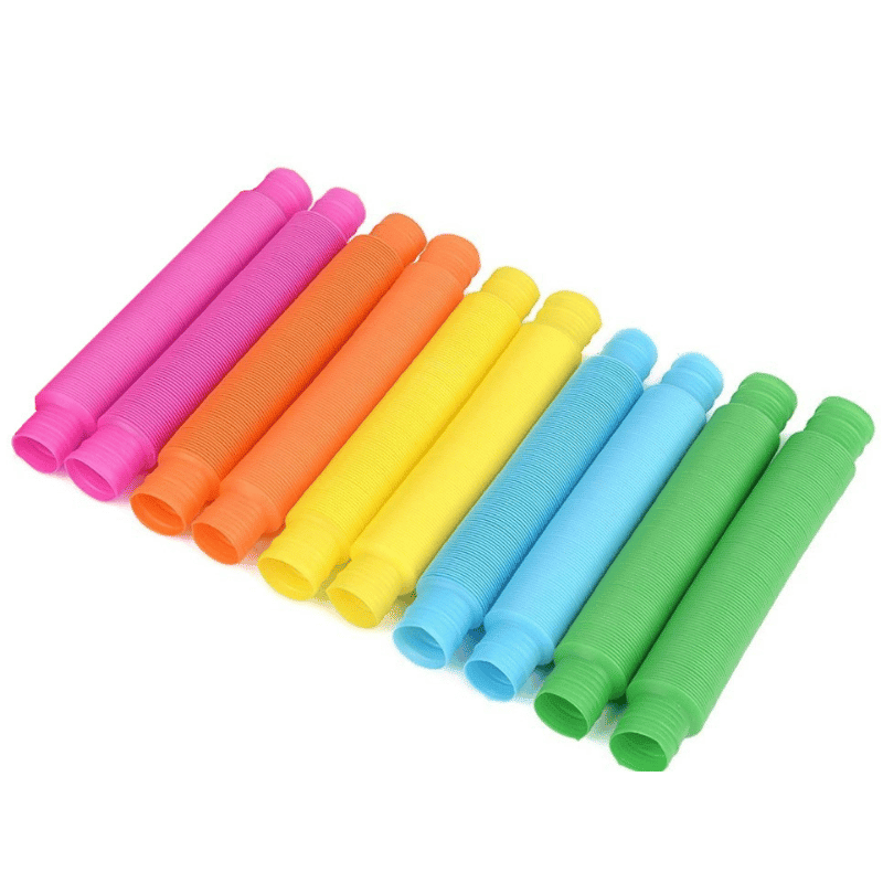 Hauskat stressileluputket, joita voi venyttää ja liittää yhteen. Putkesta kuuluu hauskoja ääniä kun venytät sitä. Yhdessä pakkauksessa on 2 putkea, jotka ovat eri värisiä.