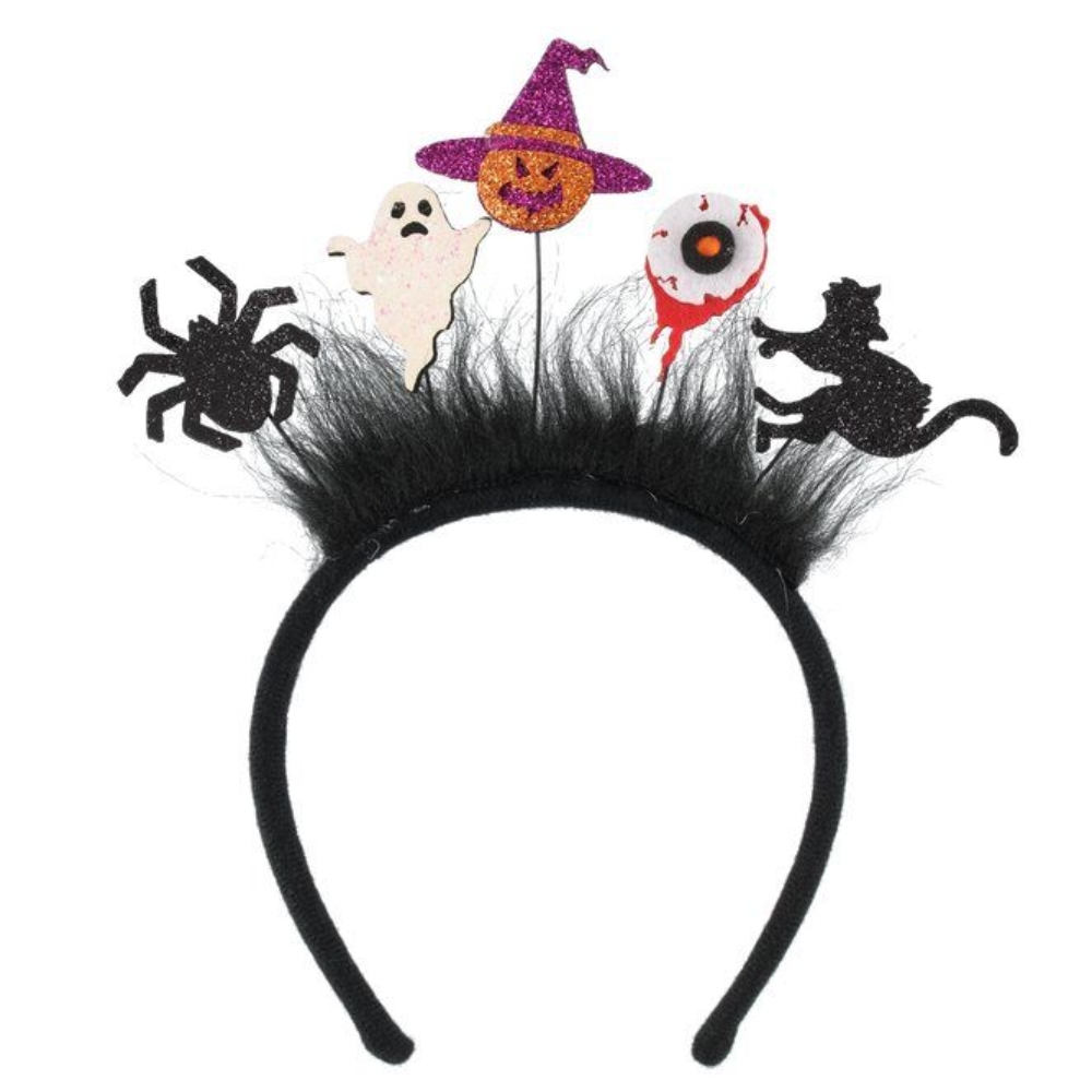Tämä tyylikäs hiuspanta on loistovalinta Halloween-juhliin. Pannassa on pörröpinta ja erilaisia kimaltavia koristeita.