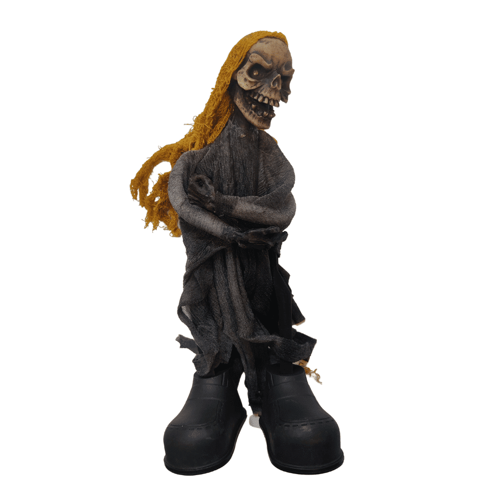 Koriste Halloween juhliin. Koristeen korkeus on noin 30 cm. Se on itsepäinen otus. Se saattaa tanssia, vilkkuvan valon ja äänen kanssa. Mutta asia ei ole varma. Osta paristot 2 kpl AA jos haluat kokeilla!