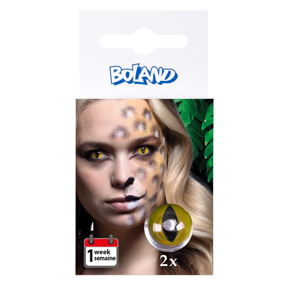 Nämä villikissan viikon kestävät piilolinssit ovat täydellinen lisä kissa-asuun. Kun laitat ne silmiisi asusi muuttuu nopeasti kammottavaksi halloween-asuksi! Juhlapiilolinssit on pakattu nesteeseen.