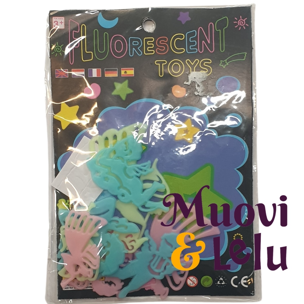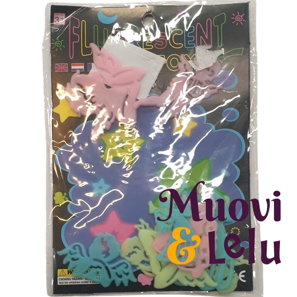 Pimeässä hohtavat erilaisia ovat pimeässä hohtavia tarroja, joita voi kiinnittää vaikkapa huoneesi kattoon. Huoneeseen tulee upea tähdistö, kun annat tarrojen latautua valossa. Erilaisia: Tähdet, jalat, kädet, kirjaimet, sydämmet, enkelit ja planeetat. Ikäsuositus: 4+ vuotta.