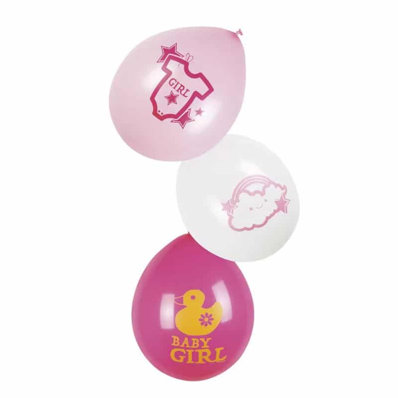 Ihastuttavat kuvioidut Baby Girl-ilmapallot Baby Showereihin ja vastasyntyneiden juhliin. Pakkauksessa on 6 kpl kuvioitua ilmapalloa: punaisia ja valkoisia. Ilmalla täytetyn pallon halkaisija noin 25 cm.
