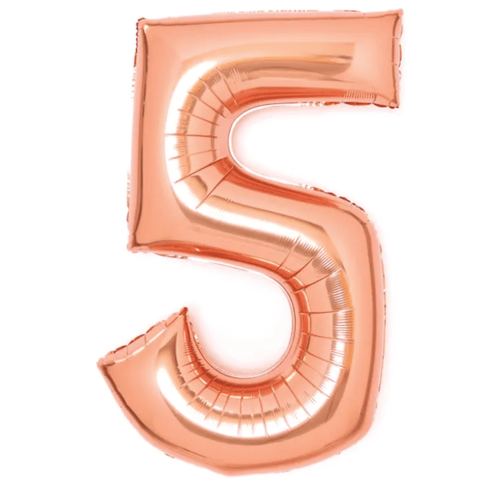 Folionumeropallo 5 ruusukulta 66 cm ilahdutta juhlissa. Numerofoliopallot ovat hienoja koristeita syntymäpäiväjuhliin! 66 cm korkea foliopallo on ruusukullan värinen, aavistuksen kupariin vivahtavan sävyinen. Foliopallon voi täyttää ilmalla tai heliumilla. Heliuminäyttö onnistuu myymälässämme. Heliumilla täytettynä pysyy ilmassa noin viikon. (Helium ei sisälly pallon hintaan.)