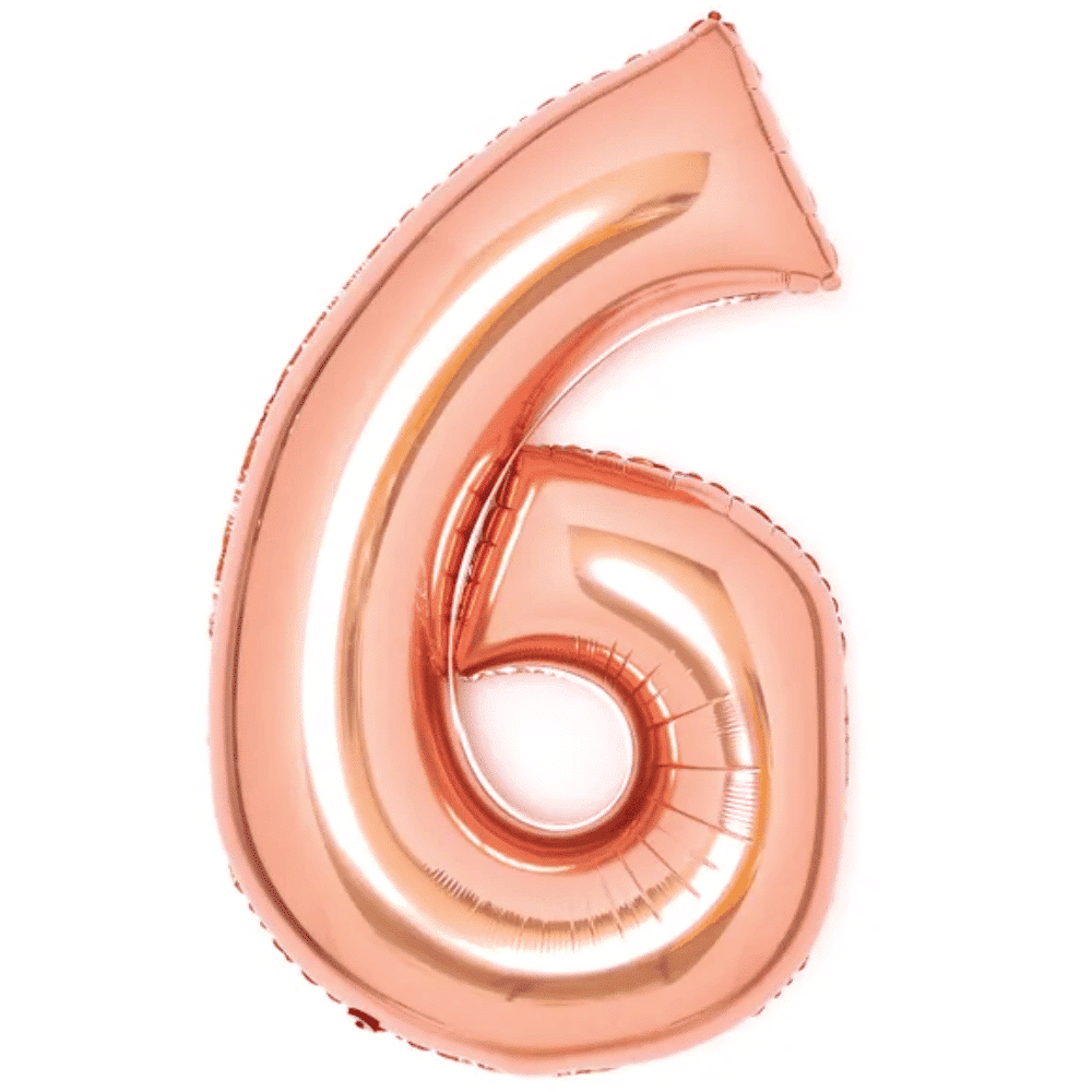Folionumeropallo 6 ruusukulta 66 cm ilahduttaa juhlissa. Numerofoliopallot ovat hienoja koristeita syntymäpäiväjuhliin! 66 cm korkea foliopallo on ruusukullan värinen, aavistuksen kupariin vivahtavan sävyinen. Foliopallon voi täyttää ilmalla tai heliumilla. Heliumin täyttö onnistuu myymälässämme. Heliumilla täytettynä pysyy ilmassa noin viikon. (Helium ei sisälly pallon hintaan.)
