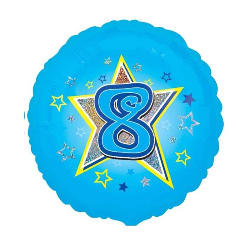 Sininen tähdillä koristeltu pyöreä foliopallo, jossa keskellä synttärisankarille sopiva numero. (KUVASSA VÄÄRÄ NUMERO) Koko noin 45 cm.