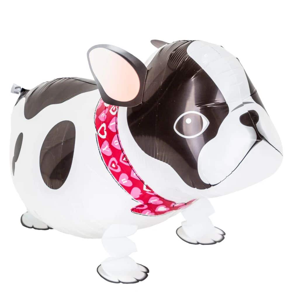 Ranskanbuldoggin mallinen muotofolio, jonka jalkoihin kiinnitetyt painot pitävät foliopallon maassa. Voit taluttaa sitä hihnassa kuten oikeaa lemmikkiä! Voidaan täyttää Helium ilmapallokaasulla. Foliopallossa on automaattiventtiili, joka mahdollistaa pallon tyhjentämisen ja täyttämisen uudelleen.