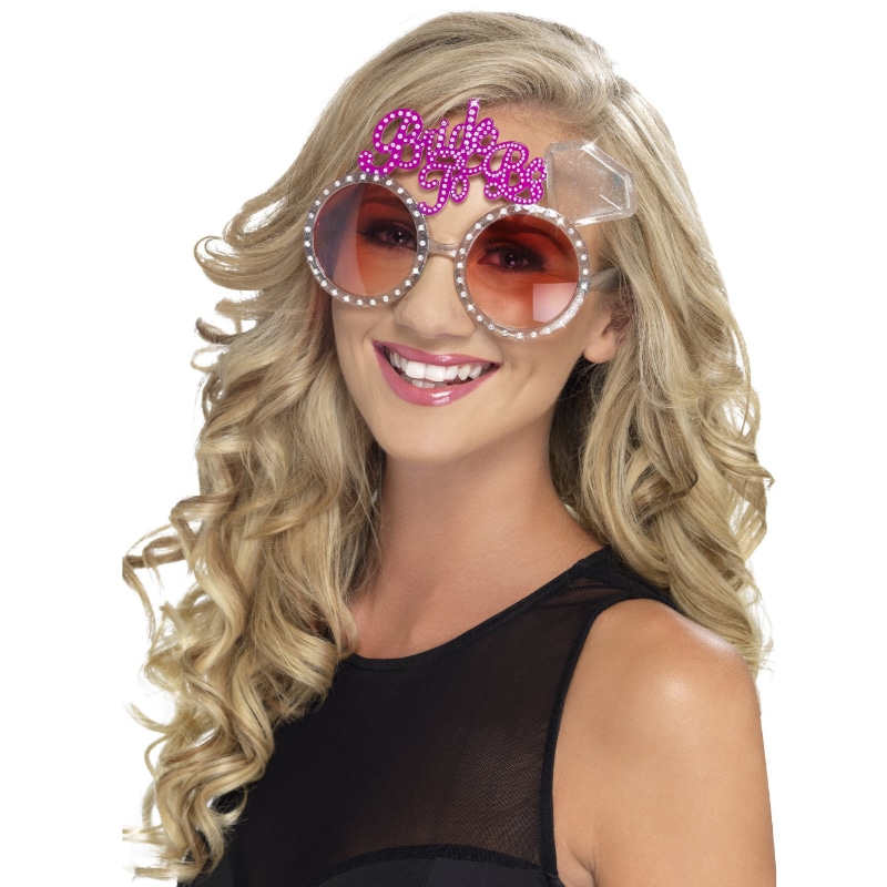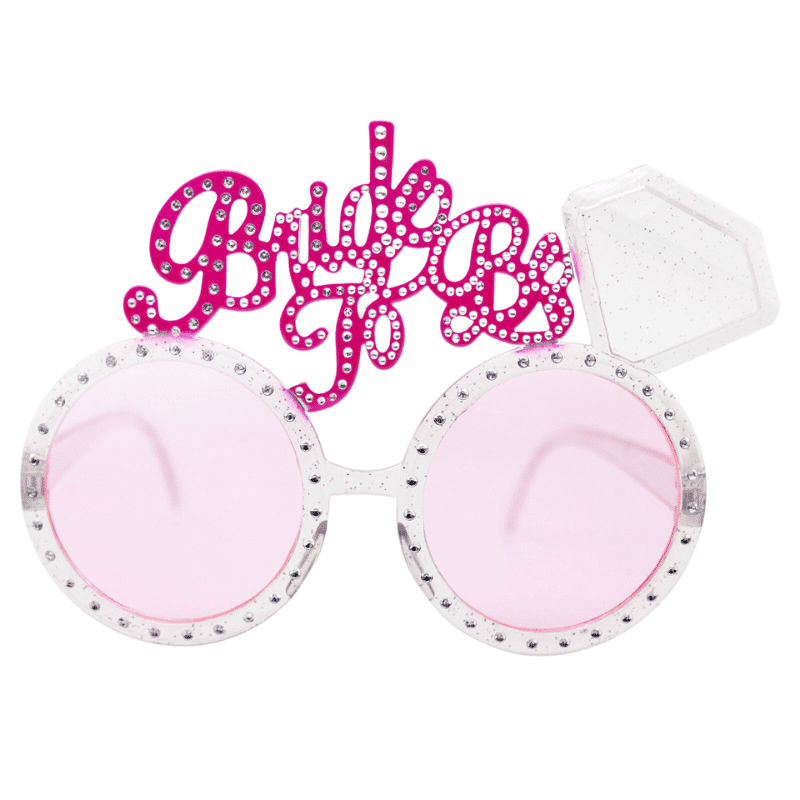 Pyöreälinssiset aurinkolasit Bride to Be-tekstillä ja timanttikoristeella polttarisankarille!