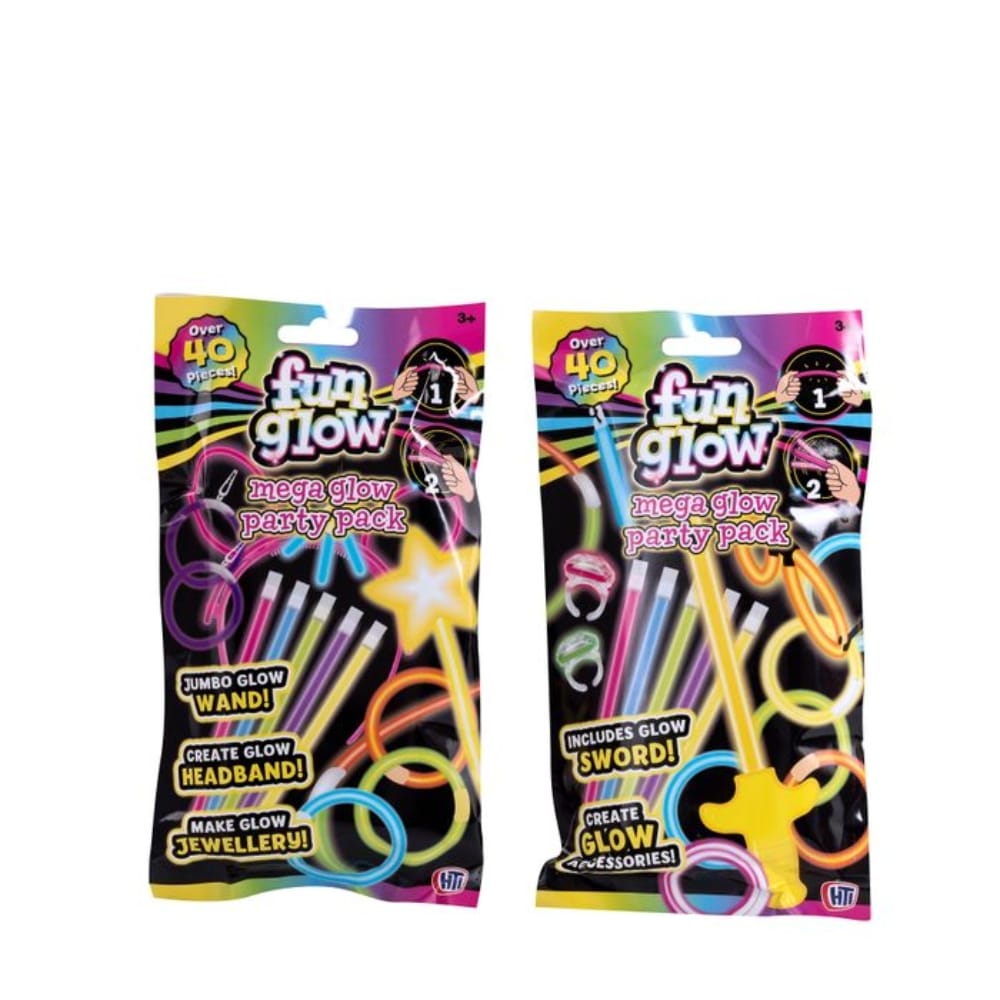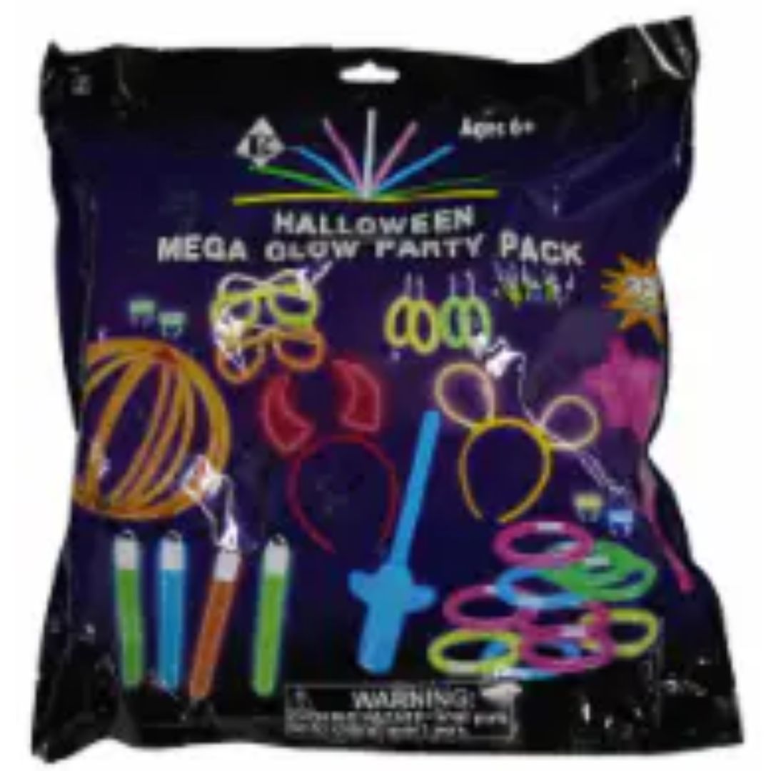 Kirjaimellisesti loistava paketti täynnä pimeässä hohtavia juttuja. Sisältää yli 40 osaa, mm. 12 valotikkua, valomiekka ja jumbokokoinen hohtotikku. Mahtava paketti synttäreille ja muihin juhliin. Ikäsuositus yli 3-vuotiaille.