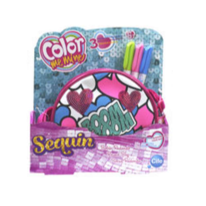 Pirteät kimalteella koristellut väritettävät pikkulaukut, jotka väritetään oman mielen mukaan. Pakkauksessa mukana 3 vedenkestävää tussia.