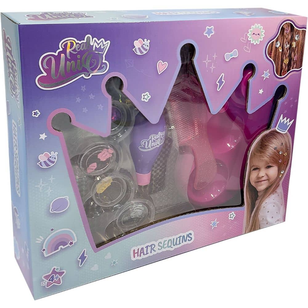 Real UniQ Hair Sequins -hiustenkoristelusarja! Voit nyt koristella ja somistaa hiuksesi kiiltävillä paljeteilla, jolloin hiuksesi muuttuvat ainutlaatuisiksi ja sopivat sekä juhliin että kaikkeen hauskaan.