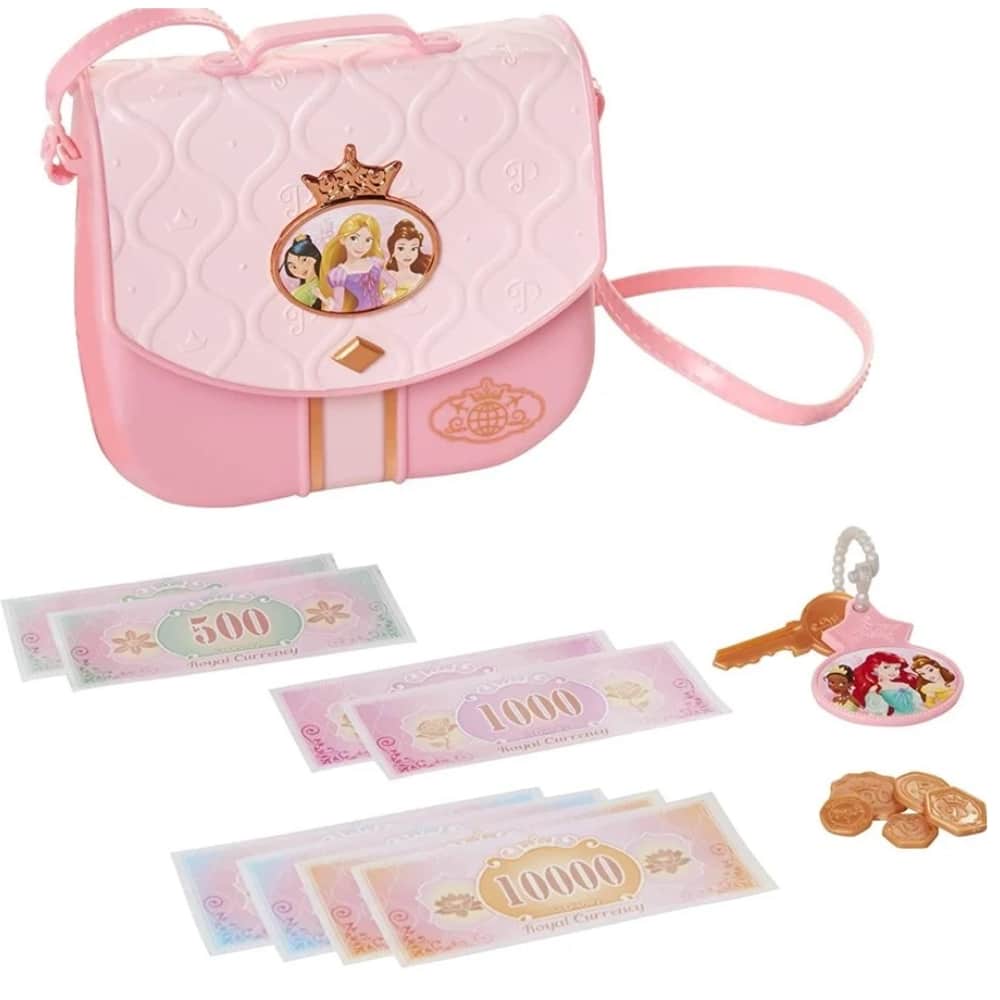 Mukana tulee yhteensä 15 osaa: muovinen avain, jossa on avaimenperä, leikki kolikoita- ja setelit ja muovinen vaaleanpunainen käsilaukku.
