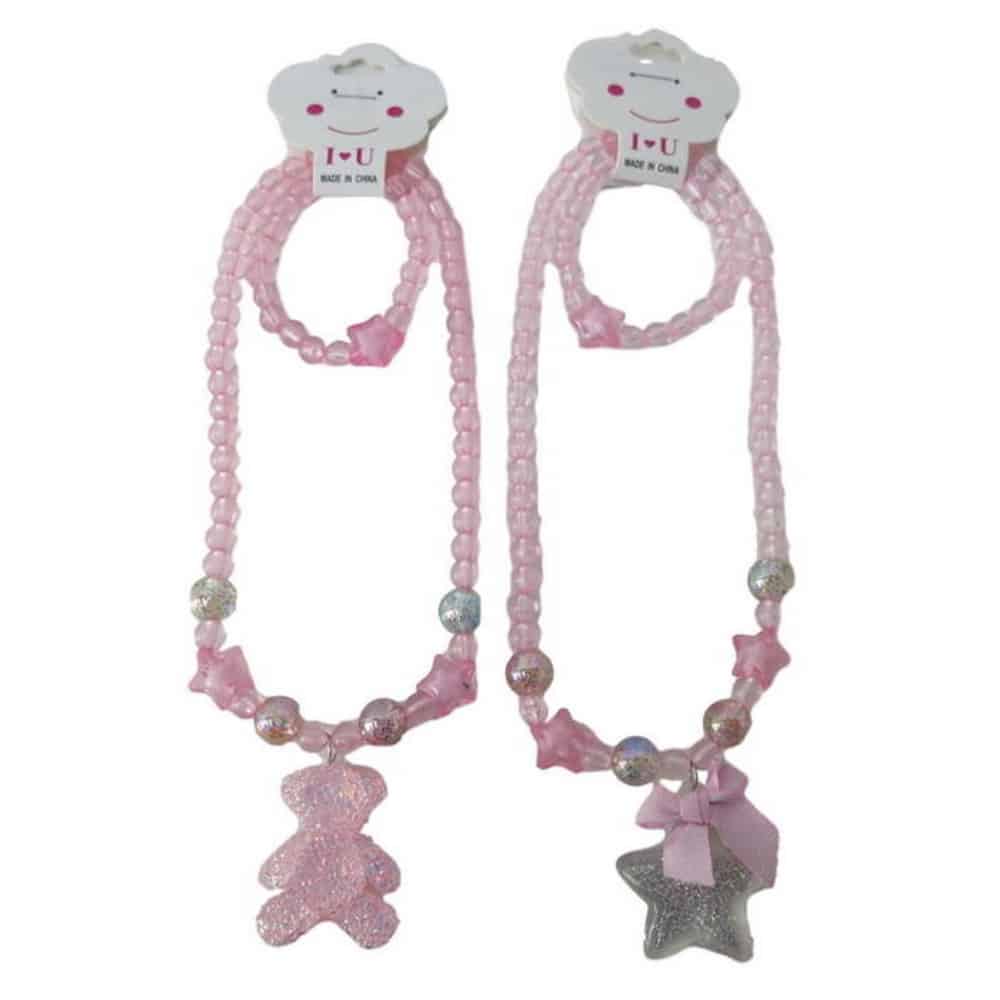 Säihkyvät helmikorut, setissä yhteensopivat kaulakoru riipuksella ja rannekoru. Lajitelmassa kaksi erilaista riipusta – nalle tai tähti.