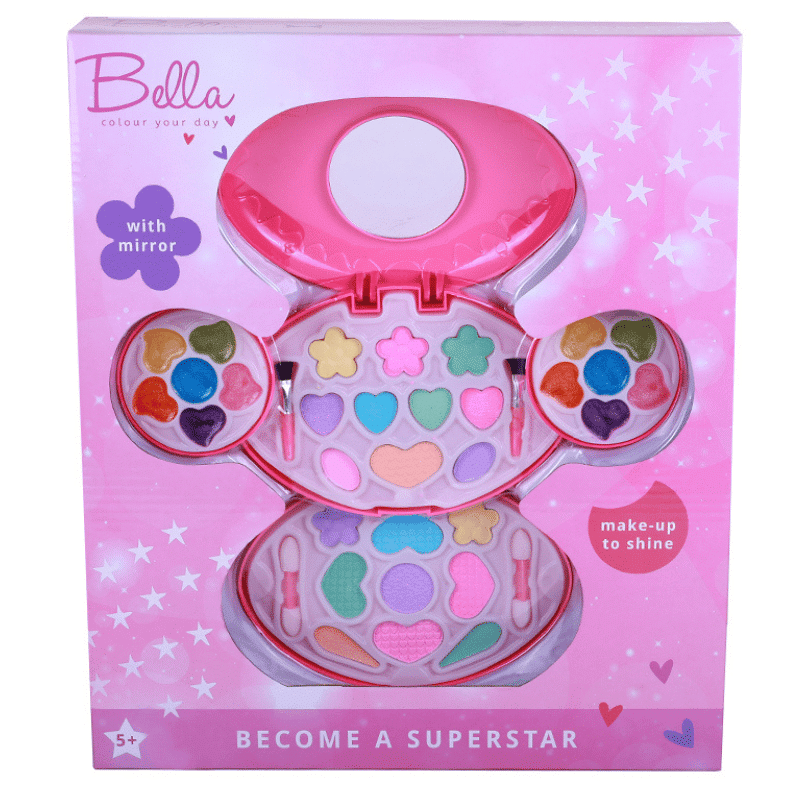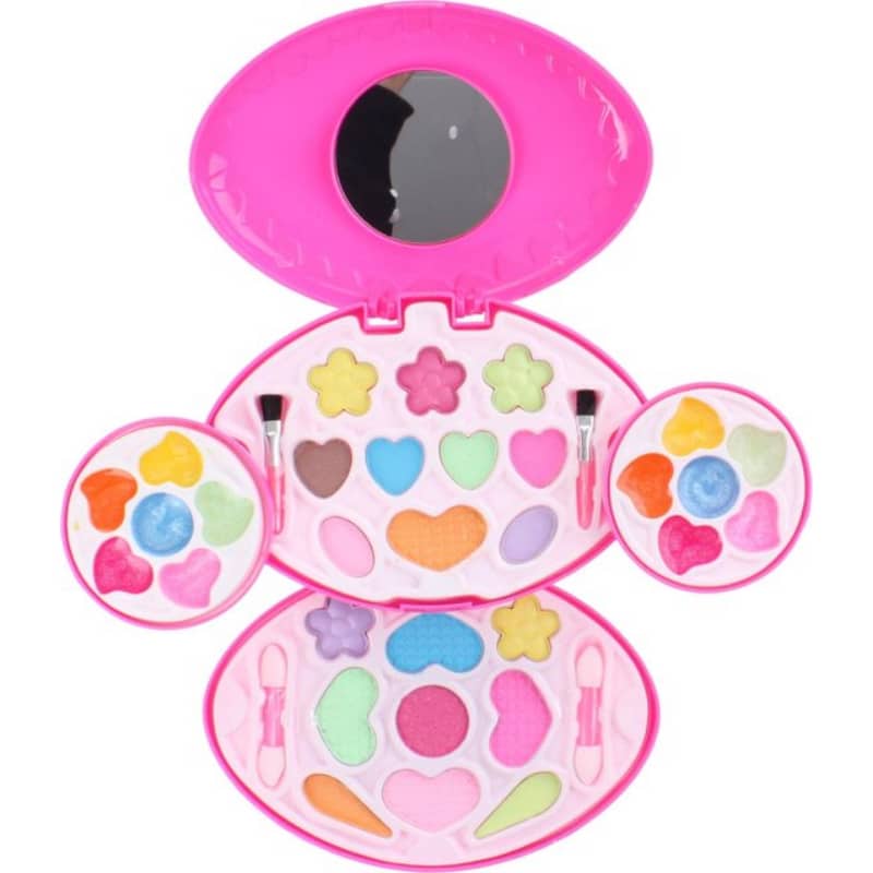 Meikkisetti pienille prinsessoille! Minkä väriset luomet ja huulet saisi olla? Tässä ovaalin mallisessa meikkisetissä on peili, runsaasti luomivärejä ja huulikiiltoja sekä neljä meikkisivellintä. Meikkirasia avautuu hienosti eri kerroksiin ja menee kiinni pieneen tilaan. Jokaisen yli viisi vuotiaan tytön unelmalahja! Ikäsuositus: 5+ vuotta.