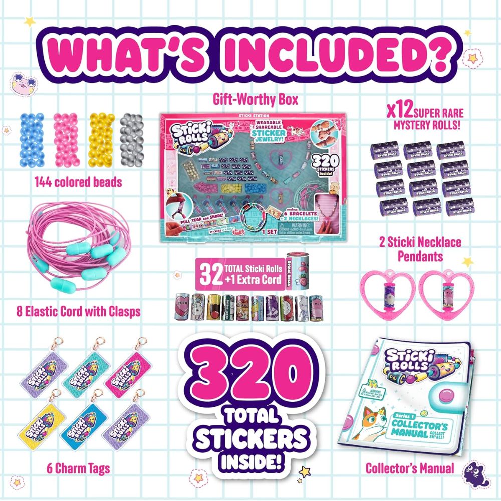 Pakkaus sisältää: useita kuvioituja Sticki Rolls -teippejä eri väreissä ja tyyleissä.