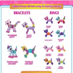 Pakkaus sisältää kaksi vanhempilemmikkiä, jotka muuttuvat rannekoruiksi, sekä neljä vauvalemmikkiä, jotka muuntuvat sormuksiksi. Kokoa oma tyylikäs eläinperhe – valittavana Kitty Family Pack ja Unicorn Family Pack!