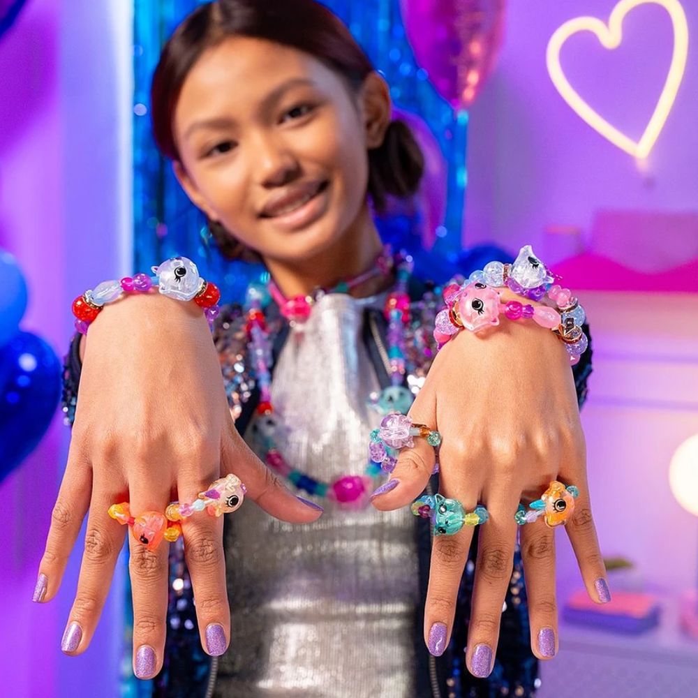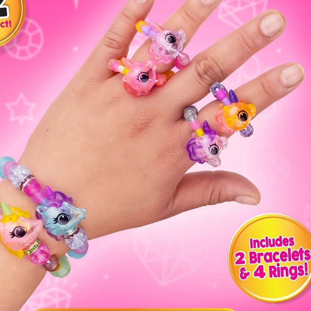 Pakkaus sisältää kaksi vanhempilemmikkiä, jotka muuttuvat rannekoruiksi, sekä neljä vauvalemmikkiä, jotka muuntuvat sormuksiksi. Kokoa oma tyylikäs eläinperhe – valittavana Kitty Family Pack ja Unicorn Family Pack!