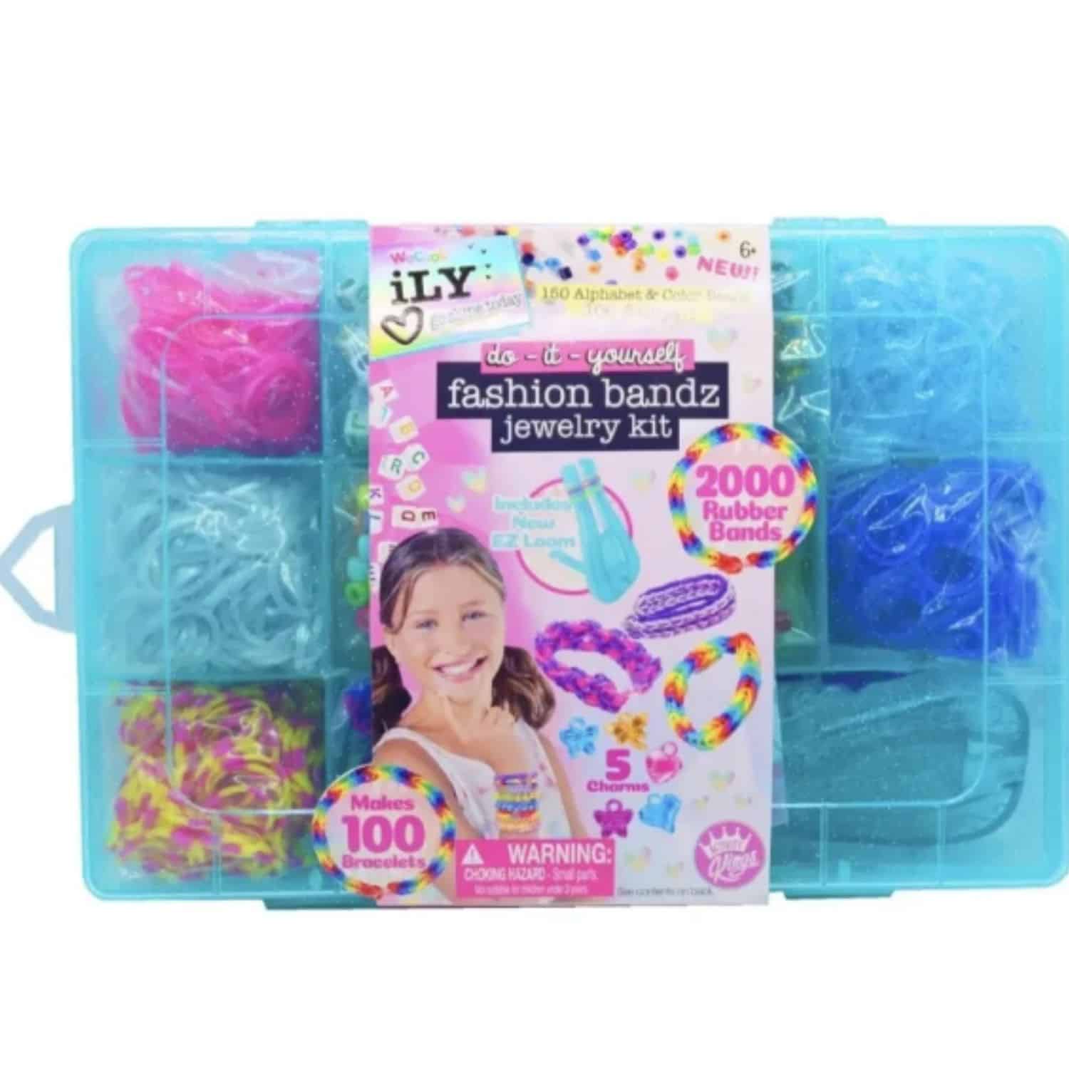 WeCool iLY Fashion Brandz Jewelry Kit Small rannekoruaskartelu sisältää kaikki mitä tarvitset Loom-korujen valmistukseen. 2000 kumilenksua, helmiä ja kirjainhelmiä, riipuksia, kiinnikkeitä ym. millä voit luoda mitä upeampia rannekoruja. Vain mielikuvitus on rajana