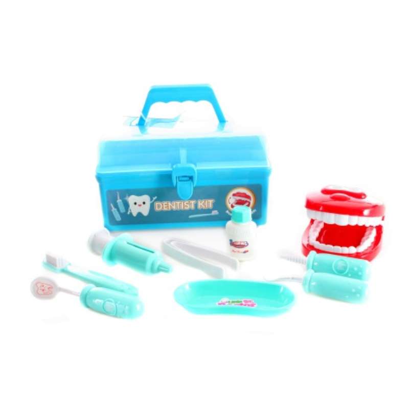 Nyt voi leikkiä hammaslääkäriä! Sisältää: tekohampaat ja 8 hammaslääkärivälinettä, mukana myös käytännöllinen pakki.