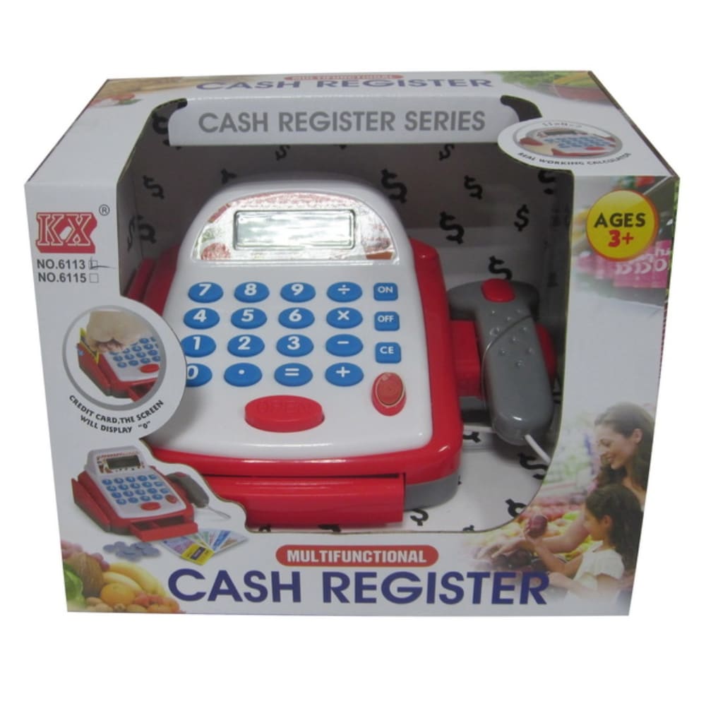 Kassakone ja leikkirahaa Kx – Kauppaleikkeihin toimiva kassakone, jonka edessä oleva kassaluukku aukeaa ”open”-näppäintä painamalla. Kassan lukulaitteella voit ”piipata” eli skannata tuotteet. Kassakoneella voit laskea yhteen-, kerto-, jako- ja miinuslaskuja ja oppia samalla matematiikkaa. Mukana tulee leikkirahaa ja luottokortti. Tuotteen koko on noin 19 x 15 cm.