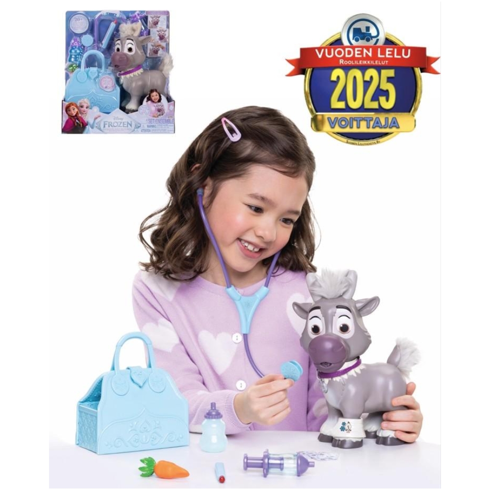 Hoida Sven terveeksi! Kuuntele hänen sydämenlyöntejään, mittaa hänen lämpötilansa, silitä hänen pehmeää turkkiaan tai anna hänelle lääkettä ruiskun avulla. Kun syötät häntä porkkanoilla tai tuttipullolla, vauva-Sven vastaa hoitoosi hauskoilla äänillä, kuten aivastuksilla ja maiskuttelulla.
