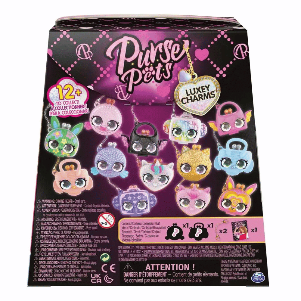 Purse Pets luxey charmsit, 2-pack keräiltävät lasten kukkaro ja olkalaukku charmsit (tyylit voi vaihdella), yllätyslaatikko
