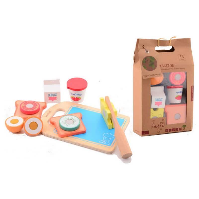 Laadukkaat leikkiruuat herkullisen aamiaisen valmistamiseen on valmistettu korkealaatuisesta puusta vastuullisesti tuotetusta metsästä. Tuote sisältää yhteensä 13 puista osaa ja soveltuu yli kolme vuotiaille lapsille. Tuote kehittää lapsen luovuutta, motorisia taitoja sekä käden ja silmien yhteistyötä.