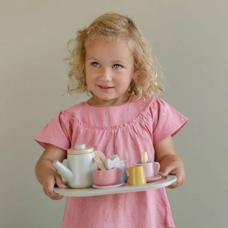 Teehetken aika! Tällä puisella teesetillä lapsesi voi tarjoilla herkulliset kupilliset teetä. Maitoa tai sokeria vai sitruunan viipale? Teesetti sisältää kaiken tarpeellisen rentouttavaan teehetkeen. Kahden hengen teeastiasto