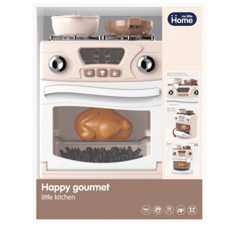 Leikki uuni ja liesi äänillä ja valoilla kotileikkeihin. Mukana tulee paistinpannu, kattila sekä kana.