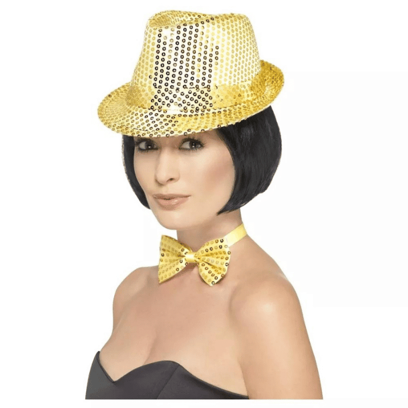 Hauska kimalteleva kultasen värinen paljetti hattu erilaisiin juhliin ja festareille! Iso koko, joka sopii myös aikuisille.