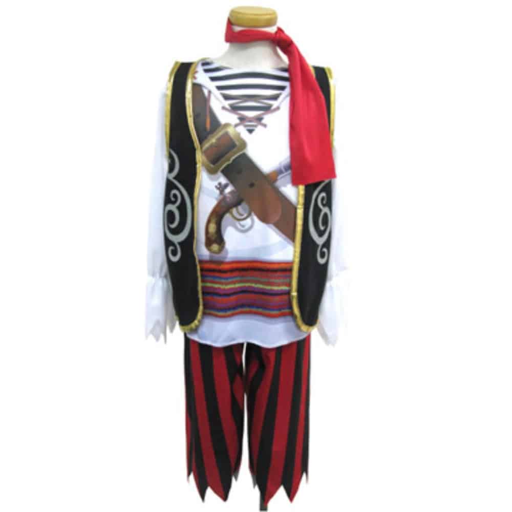 Lasten naamaisasu merirosvoasu 5-7 v – Merirosvoleikit ja -seikkailut voivat alkaa tällä täydellisellä merirosvo asukokonaisuudella, jossa on liivi, paita ja kaulahuivi. Merirosvoasu sopii erinomaisesti Halloweeniin, naamiaisiin ja roolileikkeihin.