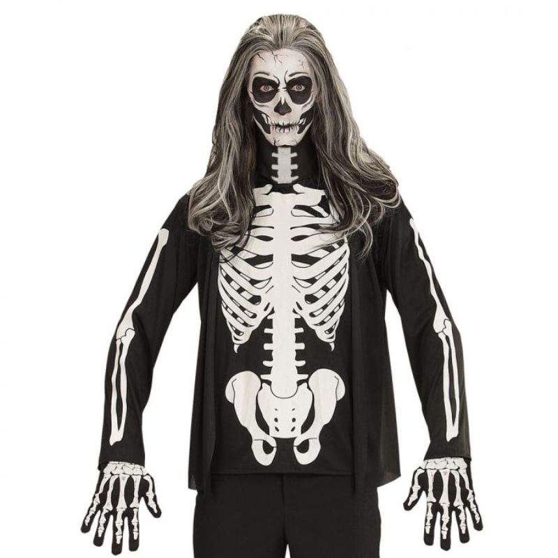 Luuranko-paita käy loistavasti halloween-asuksi! Pitkähihainen, musta luuranko-paita, jossa on valkoiset luu-painatukset edessä ja molemmissa hihoissa. Kauhuaiheinen naamiaisasu sopii luonnollisesti niin halloweeniin kuin kaikkiin muihinkin hieman synkempiin juhliin.