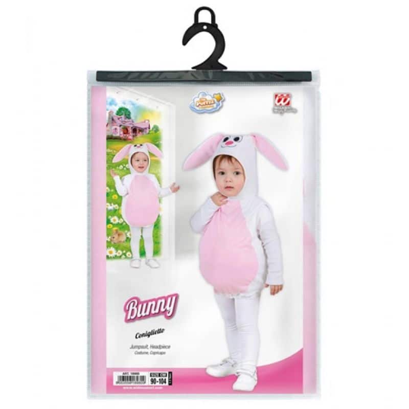 Suloinen pupuasu arkisiin roolileikkeihin ja naamiaisiin 2-3-vuotiaille! Asuun kuuluu topattu hihaton paita sekä päähine! Paita on helppo laittaa päälle, sillä kaula-aukon saa suuremmaksi tarrakiinnityksellä. Päähineessä on pupun korvat sekä printattu suu, silmät ja nenä. Materiaali on 100 %:sti polyesteriä. Käsinpesu tarvittaessa.