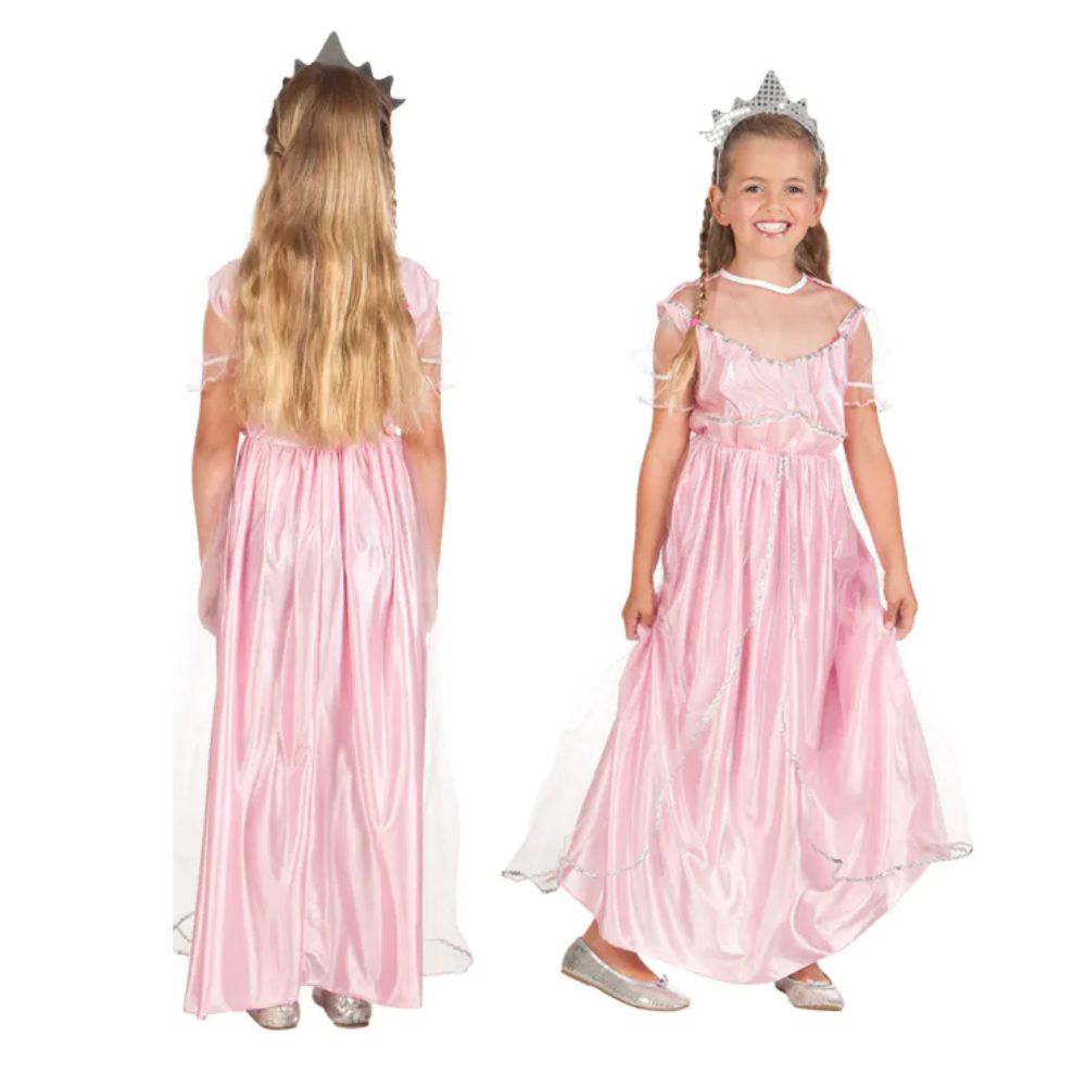 Lasten prinsesssa mekon mukana tulee säihkyvä tiarapanta. Mekko suljetaan takaata tarranauhalla.