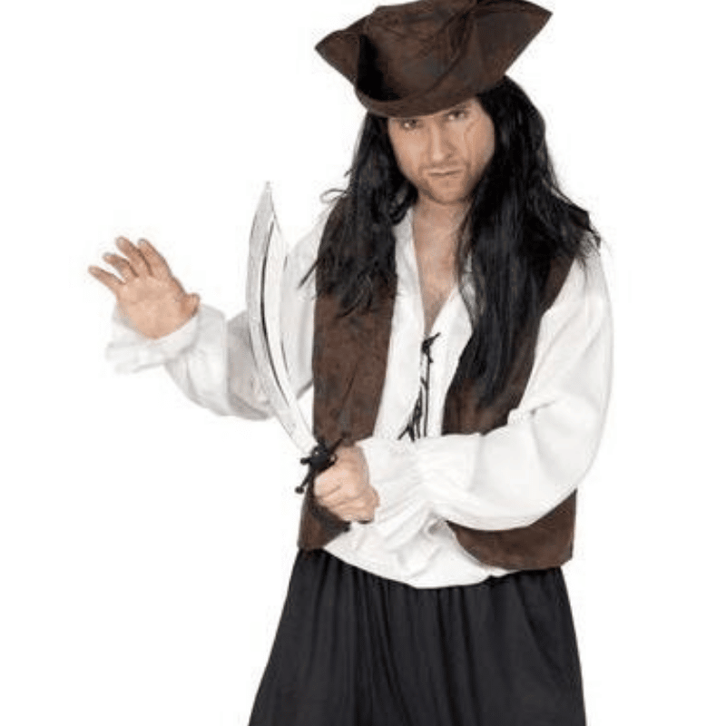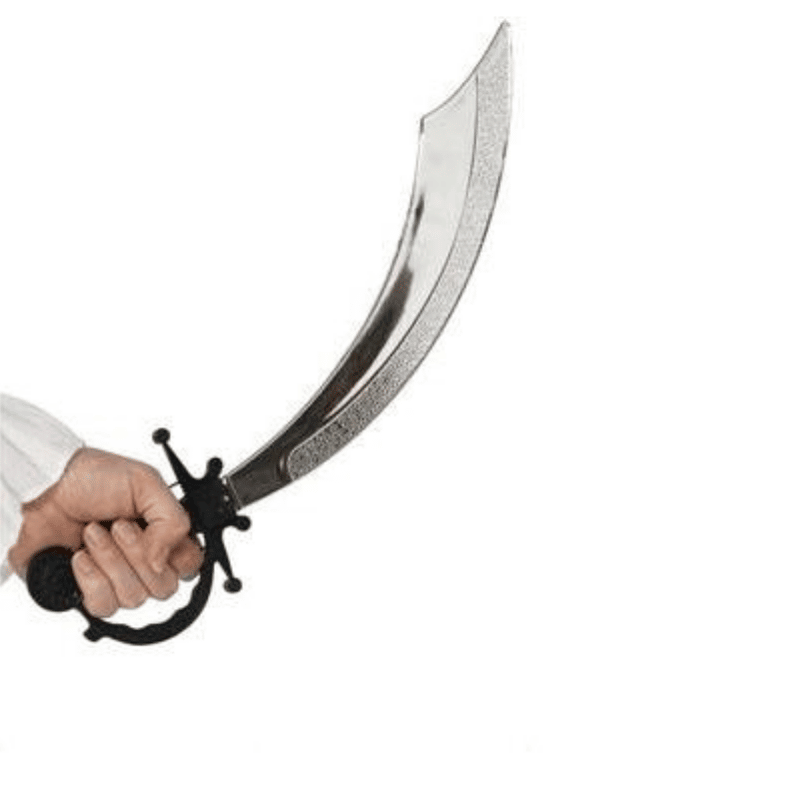 Hopeinen merirosvon miekka naamiaisasun lisukkeeksi. Miekan materiaali on muovia ja siinä on pyöristetyt reunat. Miekan pituus on noin 38 cm.