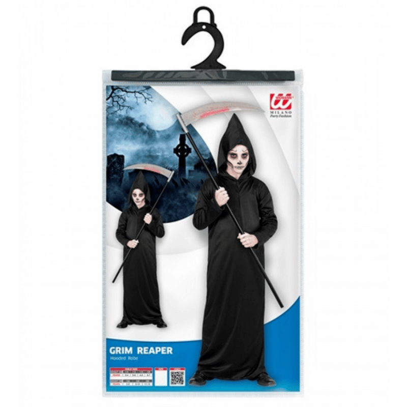 Viikatemiehen naamiaisasu sisältää hupullisen kaavun.