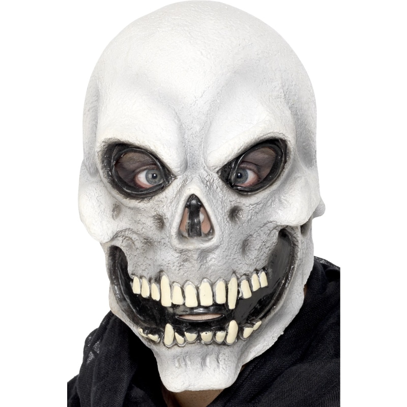 Valkoinen, perinteinen ja hurja pääkallo-naamari Halloween-naamiointiin. Hengitys- ja näköreiät ovat silmien, suun ja sierainten kohdalla. Yksi iso koko, mikä sopii myös aikuisille.