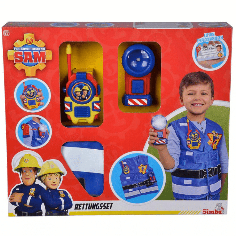 Palomies Sami pelastustarvikesetti on täydellinen varaustepaketti palomiehen töihin. Paketissa on radipuhelin, taskulamppu ja liivi.