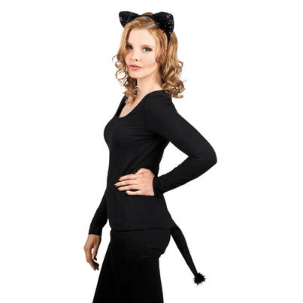 Panta kissan korvat ja häntä sopivat erinomaisesti naamiaisiin, joissa haluat esittää kissaa. Mustassa pannassa on mustia paljetteja koristeena ja röyhelöä. Hännässä on lenksu, jonka voit pujottaa esimerkiksi vyöhösi, jolloin se pysyy päälläsi. Yksi koko aikuisille, mutta sopii myös lapsille. Ei sovellu alle kolmevuotiaille lapsille.