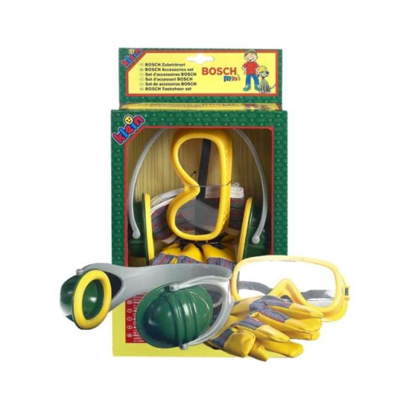Klein Bosch lasten suojavarustesetti tuo turvaa ja aitouden tuntua leikkeihin! Setti sisältää lapsille mitoitetut suojalasit, kuulosuojaimet ja työhanskat, jotka sopivat erinomaisesti pienten rakentajien roolileikkeihin. Realistinen ulkonäkö innostaa lasta leikkimään aktiivisesti ja turvallisesti kotityömailla tai omassa leikkiverstaassa. Suojavarusteet sopivat yli 3-vuotiaille ja täydentävät mainiosti leikkityökalujen käyttöä – roolileikki muuttuu entistä elävämmäksi